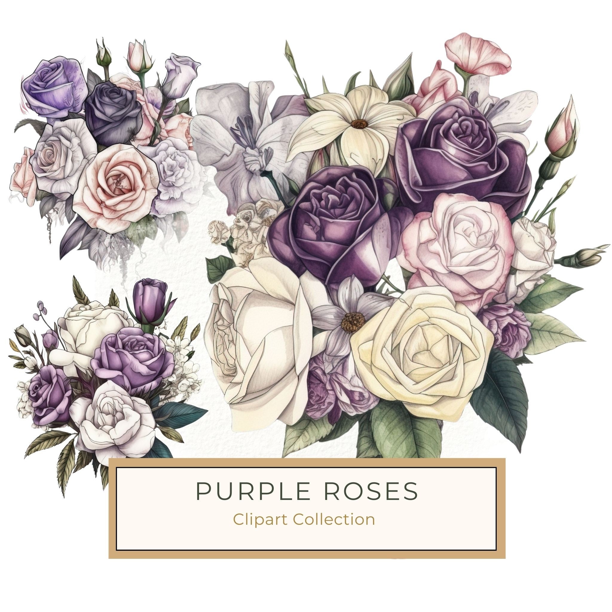 Immerse your projects in elegance with this stunning watercolor floral bouquet featuring purple and cream blooms. The delicate layering of flowers, including roses, anemones, and lavender, exudes a natural yet sophisticated charm. Perfect for scrapbooking, wedding invitations, greeting cards, or digital journaling, this design captures timeless beauty. With its hand-painted style and subtle detailing, it’s ideal for crafters seeking a modern yet classic aesthetic.